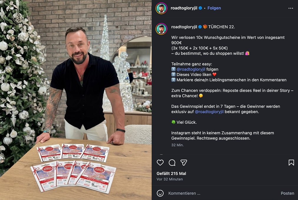 Um im Lostopf dabei zu sein, musst du alle 3 Schritte auf Instagram durchgeführt haben: